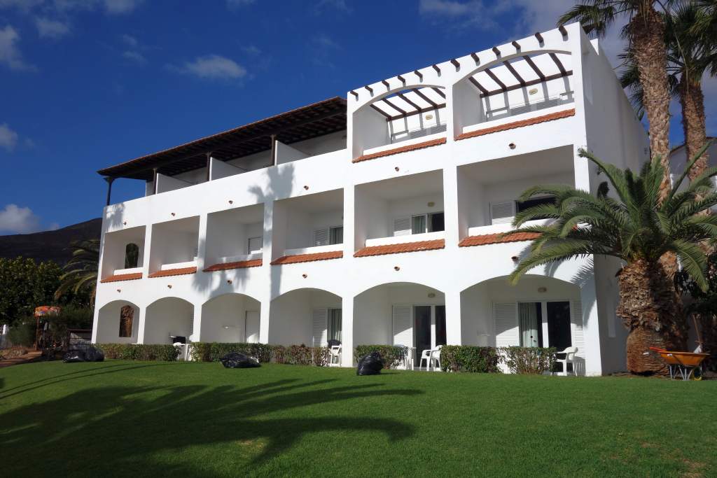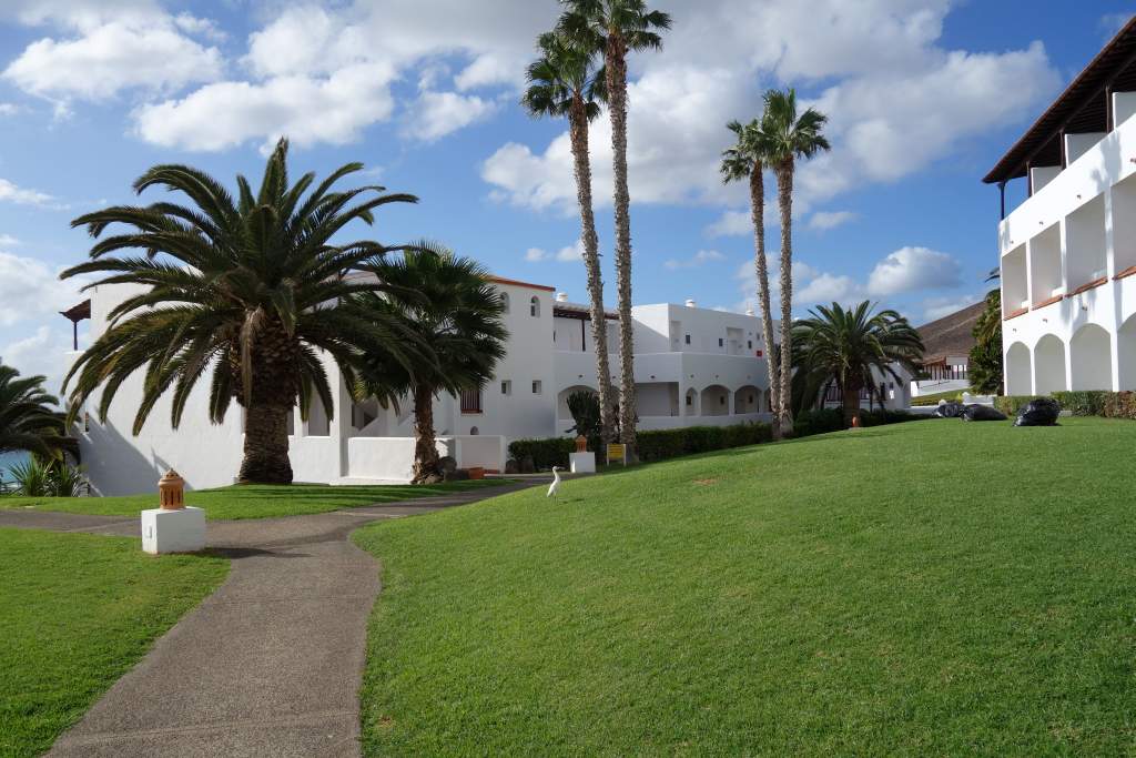 Wir hatten ein Zimmer in der vordersten Reihe im Erdgeschoss. So hatten wir Meerblick, der allerdings von einem Drahtzaun ein wenig blockiert wurde. Das war uns aber viel lieber, als wenn wir in einem der hinteren Gebäude oder der oberen Stockwerke gelandet wären. So konnten wir auf die Terrasse gehen oder den davor liegenden Rasen und wenn die Sonne hinter dem Haus stand, dann stellten wir die Liege einfach weiter vorne auf den Rasen in die Sonne. Unser Zimmer war geräumig und sauber, aber wir waren in den gesamten zwei Wochen sowieso nur wenige Stunden im Zimmer, in denen wir nicht schliefen oder am Fertigmachen zum Ausgehen waren.