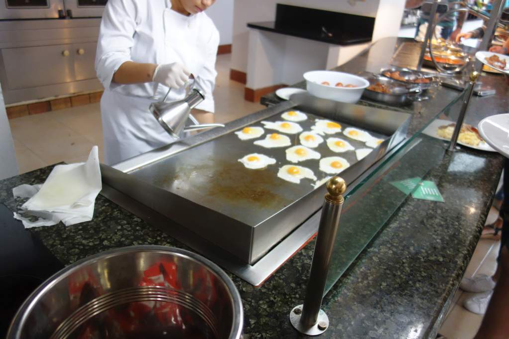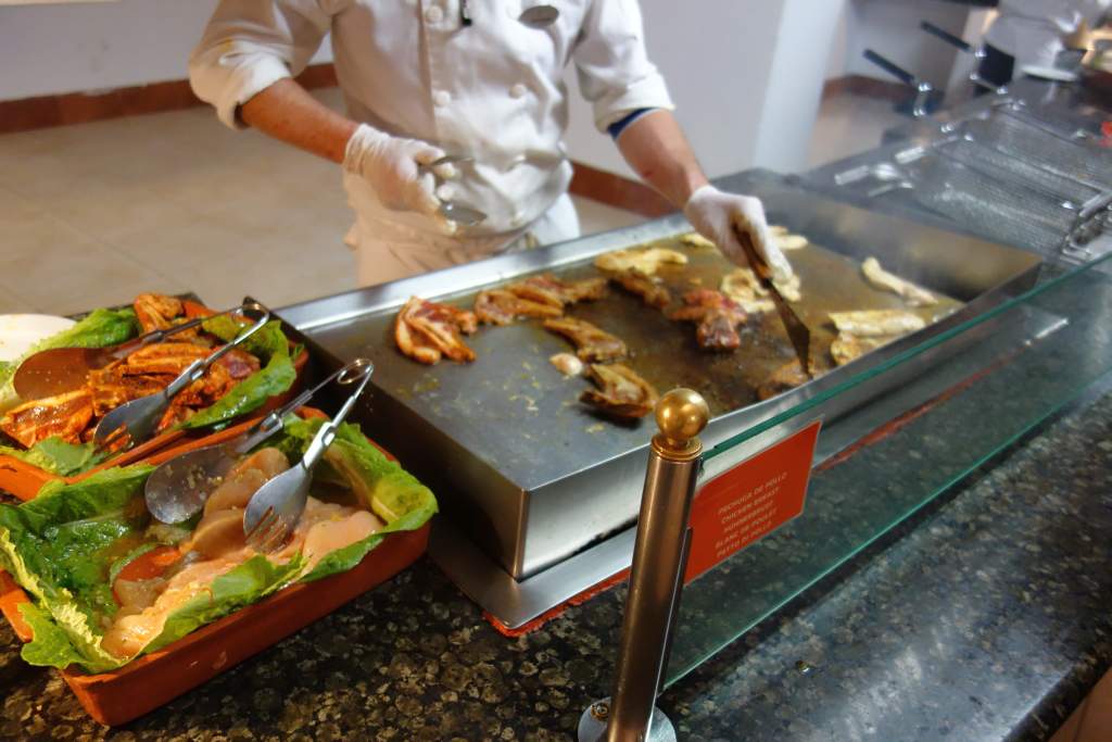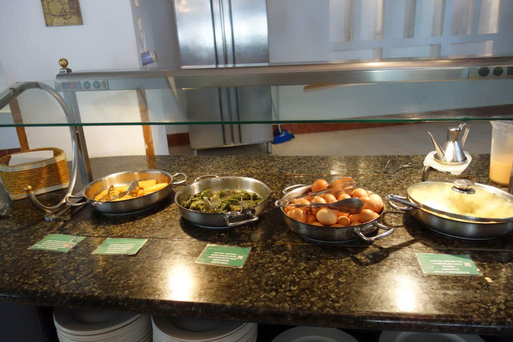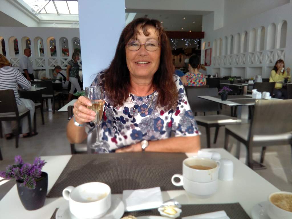 Frühstück gab es von 7:30-10:00 Uhr und wir kamen selten vor 9:00 Uhr, eigentlich nur am Tag des Ausflugs in den Norden nach Lobos. Die Auswahl war groß, da gab es Süßes ebenso wie kräftiges, beides warm oder kalt. Wer sich bewusst ernähren wollte, der fand frische und getrocknete Früchte, Müsli und Joghurt. Ich bevorzugte als Einstieg meist ein Spiegelei mit einem Rösti, danach Brot und Käse und zum Abschluss ein kleines Schoko-Muffin oder einen kleinen Panvake mit Nutella. Elke schaffte es sogar, weiße Bohnen oder Gemüse zu verzehren und meist begann der Tag für sie auch noch mit einem Gläschen Sekt.