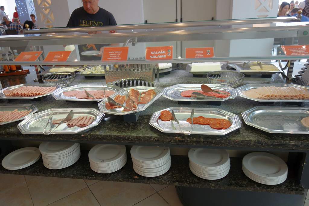 Wir hätten laut Vertrag auch 2x in den anderen Restaurants nach Karte essen können. Aber die Auswahl auf den Karten riss uns nicht vom Hocker, zu viel Fleischgerichte. Andererseits fanden wir die Qualität am Buffet so gut und die Selbstbedienung so bequem, dass wir uns entschlossen, auf das Essen A La Carte zu verzichten.