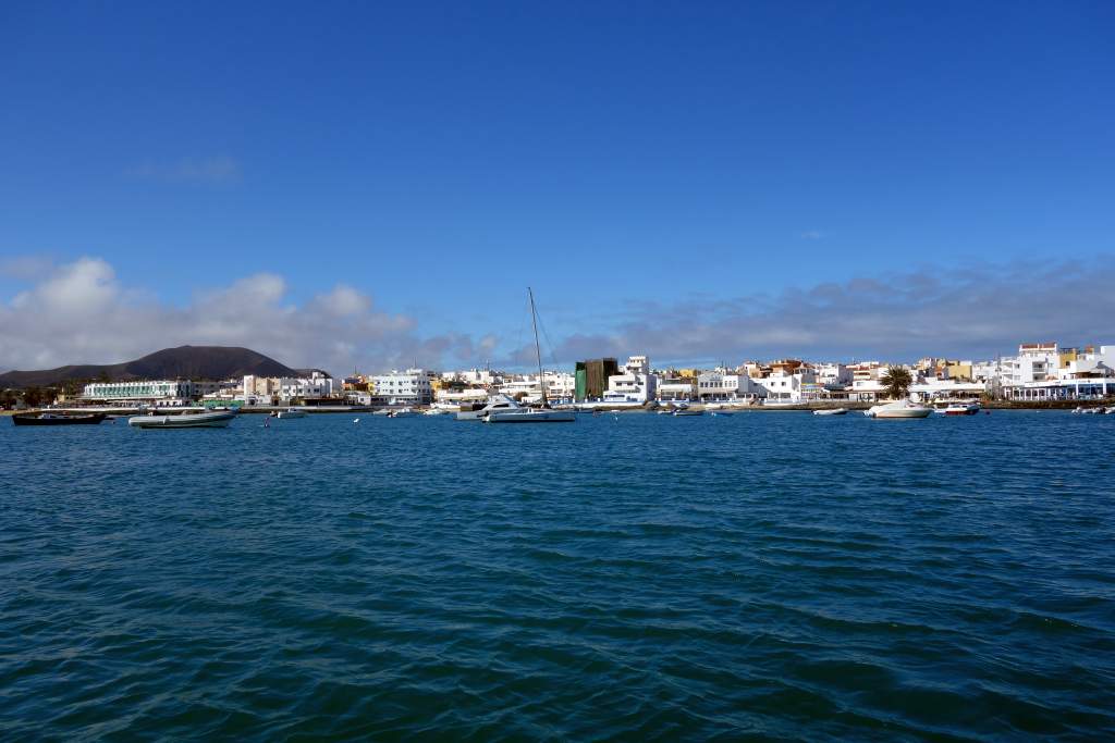 Am zweiten Tag mit dem Leihwagen entschlossen wir uns, vom Hotel aus rund 120km ganz in den Norden in die Stadt Carrajelo zu fahren. Wir wollten die rund 2km vor Carralejo gelegene kleine Insel Lobos zu besuchen. Problemlos kamen wir auch nach knapp 2 Stunden Fahrzeit gegen 10:00 Uhr am Hafen von Carrajelo an und fanden dort auch sofort einen Parkplatz. Auf dem Hinweg hatte es erstmals richtig toll geregnet und wir befürchteten für den restlichen Tag das Schlimmste. Aber noch vor der Ankunft riss das Wetter auf und es wurde heiter bis wolkig.