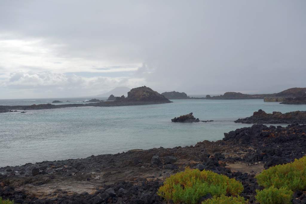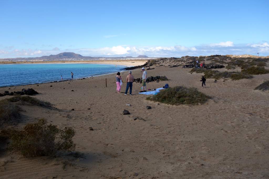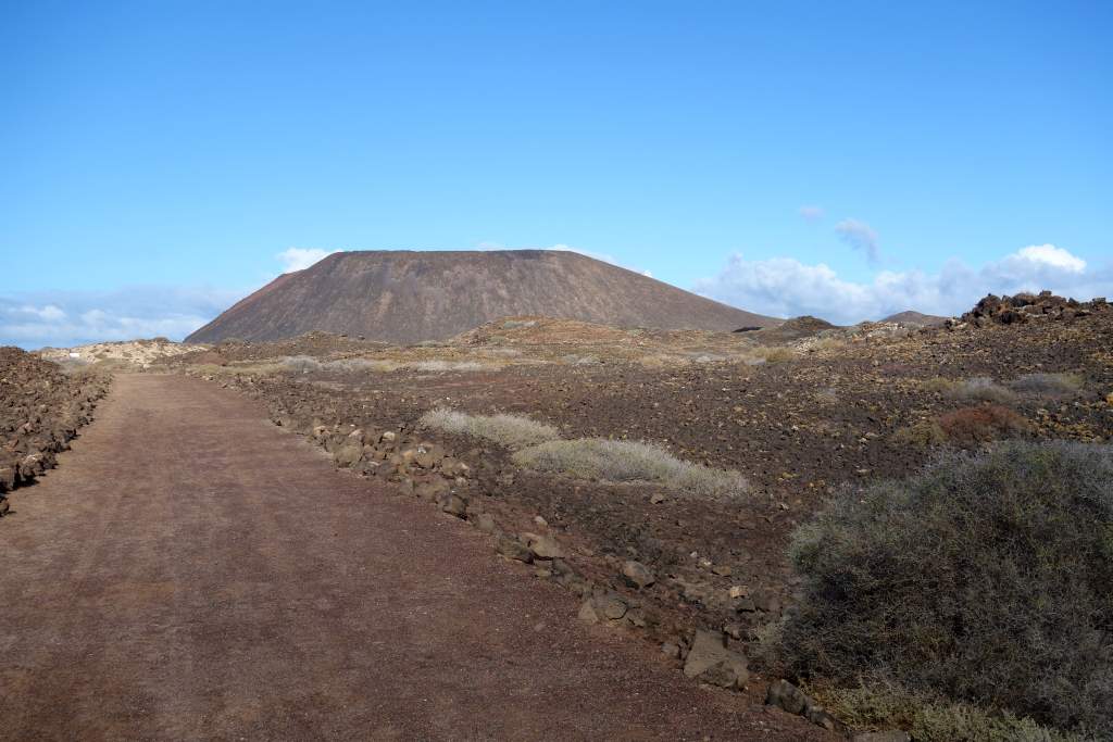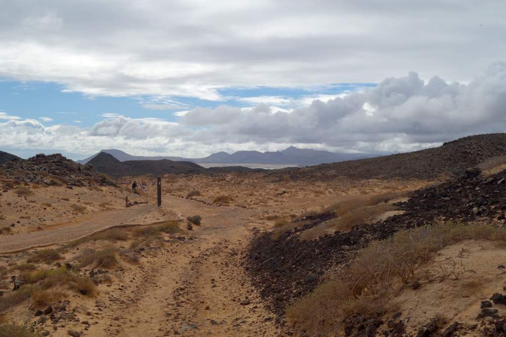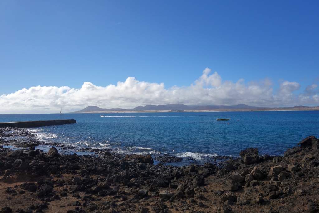 Nach rund 15 Minuten Fahrzeit kamen wir erleichtert und wohlbehalten am Felsen von Puertito auf der Insel an. Die einzige Abholung war gegen 16:00 Uhr angekündigt, so hatten wir mit 5 Stunden mehr Zeit als genug für Erkundigungen. Vor dem Rundgang bestellten wir für die Rückkehr noch eine Portion Paella, für unterwegs hatte wir ja eigentlich genügend Snacks mitgebracht. Wir begannen die super ausgeschilderte und etwa 10km weite Wanderung um die Insel entgegen dem Uhrzeigersinn. Zum Wanderweg ist nicht allzu viel zu sagen, er ist gut ausgeschildert, abwechslungsreich, bietet wuderbare Eindrücke und ist sehr leicht zu begehen, wenn man von der optionalen Besteigung des Aussichtshügels Montana Caldera absieht.