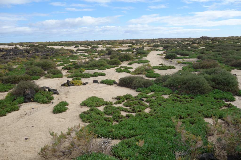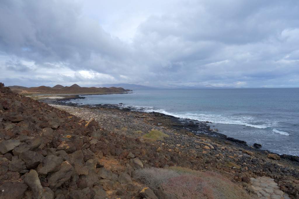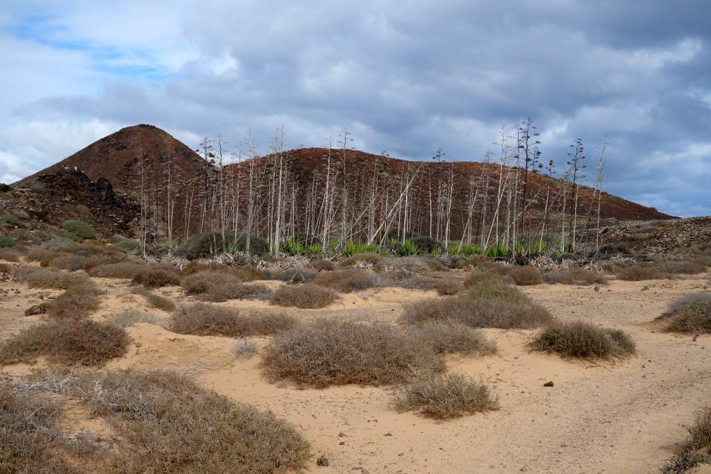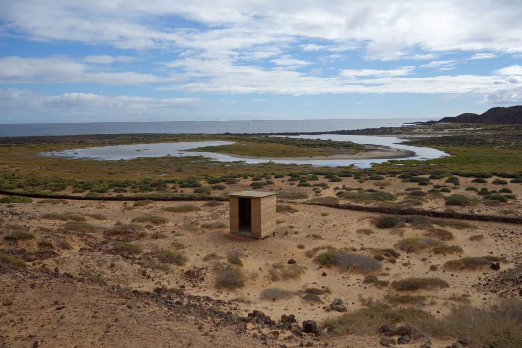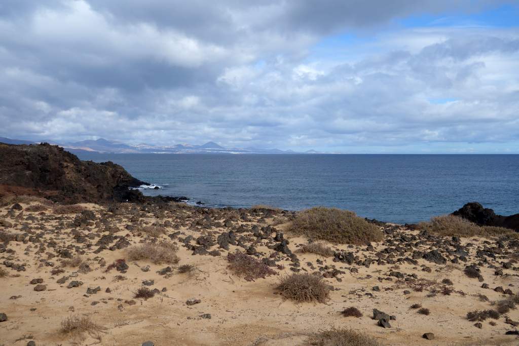 Nach rund 15 Minuten Fahrzeit kamen wir erleichtert und wohlbehalten am Felsen von Puertito auf der Insel an. Die einzige Abholung war gegen 16:00 Uhr angekündigt, so hatten wir mit 5 Stunden mehr Zeit als genug für Erkundigungen. Vor dem Rundgang bestellten wir für die Rückkehr noch eine Portion Paella, für unterwegs hatte wir ja eigentlich genügend Snacks mitgebracht. Wir begannen die super ausgeschilderte und etwa 10km weite Wanderung um die Insel entgegen dem Uhrzeigersinn. Zum Wanderweg ist nicht allzu viel zu sagen, er ist gut ausgeschildert, abwechslungsreich, bietet wuderbare Eindrücke und ist sehr leicht zu begehen, wenn man von der optionalen Besteigung des Aussichtshügels Montana Caldera absieht.