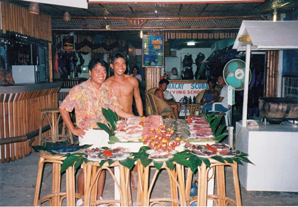 Das Essen hier war optisch gut, die Zubereitung allerdings mittelmäßig bis schlecht. Wie ich es von Phi Phi Island in Thailand kannte, wurde die Rohware (Fisch, Fleisch, ...) vor den Restaurants aufgebaut und dann nach Auswahl frisch zubereitet. Leider ist es mir nicht gelungen, in all den Wochen auch nur 1x wirklich gut zu Essen. Vor allem der frische Fisch wurde absolut misshandelt und war nach der Zubereitung tot und trocken gebraten. Beim vorherigen Inselhopping war vor allem das Frühstück für mich ein Problem, einmal gab es nichts anderes als Reis und Fisch zum Frühstück, das war dann schon wirklich hart.