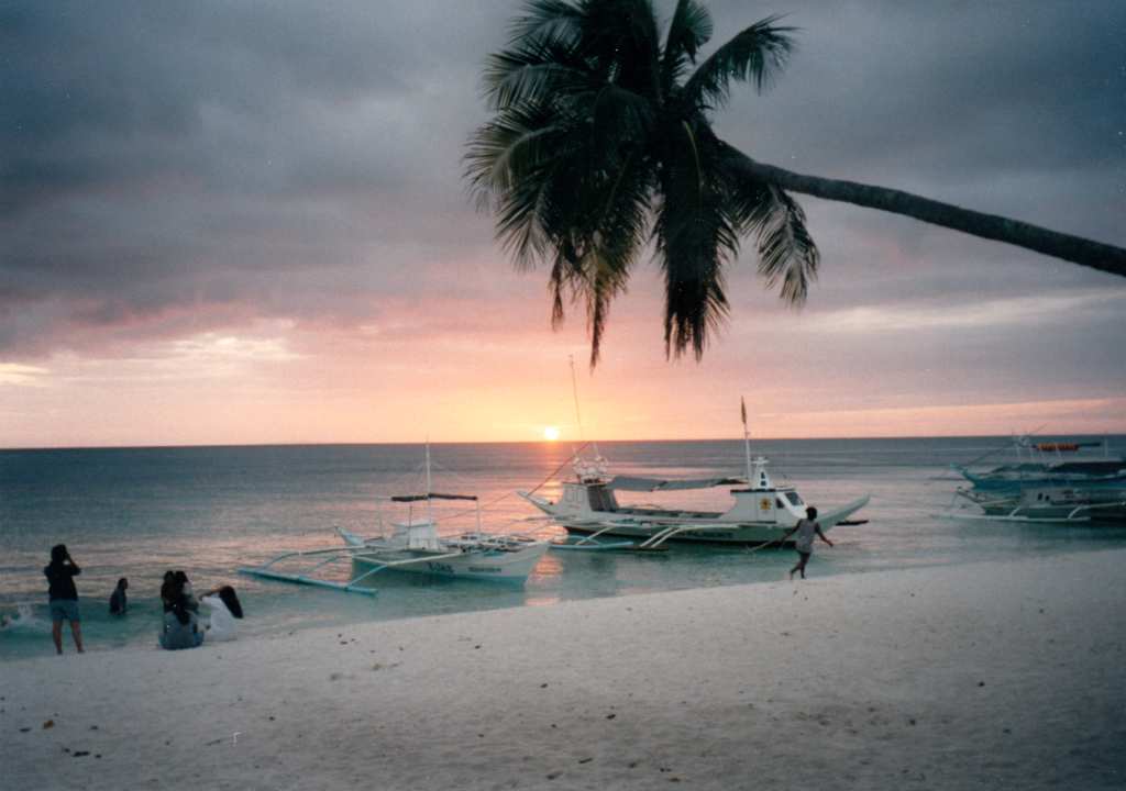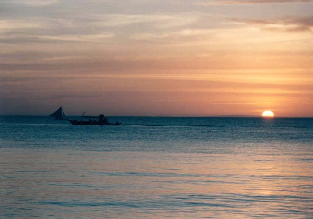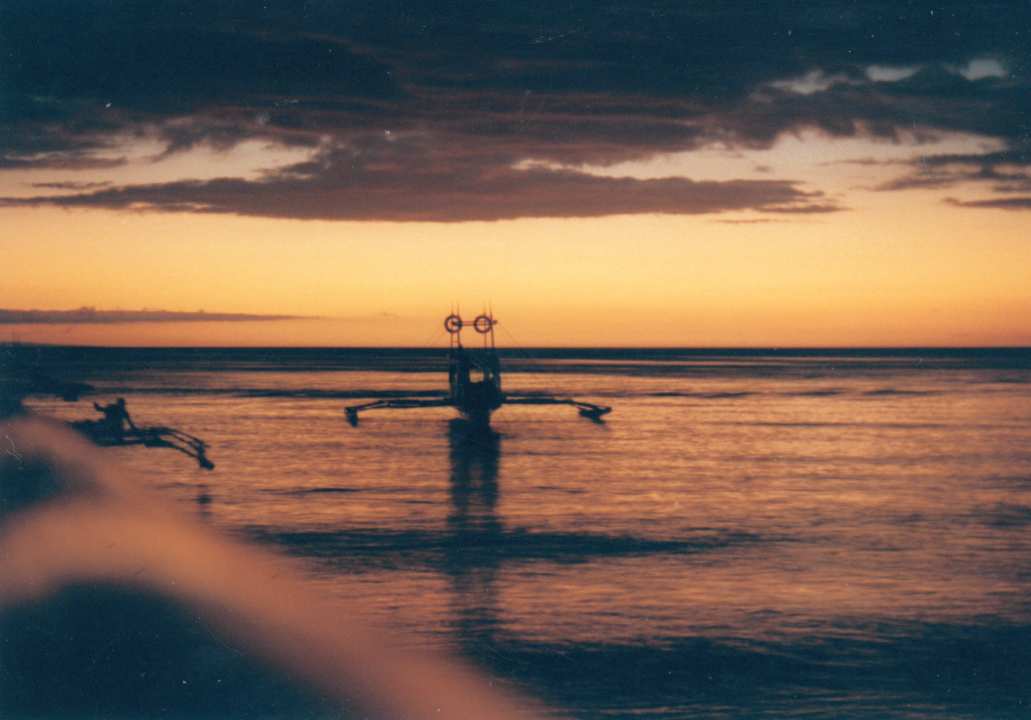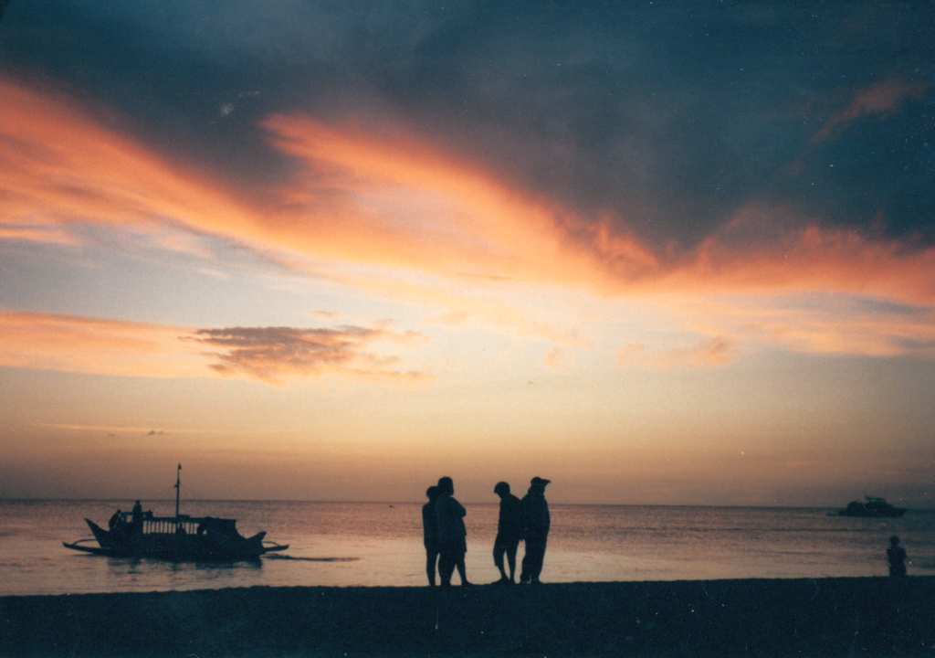 Landschaftlich was Boracay wirklich ein Traum. Weißer Sandstrand pur, und der war so lang, dass man stundenlang am Meer entlang Spaziergänge unternehmen konnte. Durch die zunehmende Düngung nahmen allerdings leider auch die Probleme mit der Algenpest massiv zu, das verschweigen die Reiseprospekte allerdings gerne. Am Abend war es eine regelmäßige Zeremonie, sich kurz vor Sonnenuntergang vor dem Nachtessen zu versammeln, um den Sonnenuntergang zu genießen. Dabei habe ich ein paar nette Bilder eingefangen, die ich als Schattenspiel bezeichnen würde.
