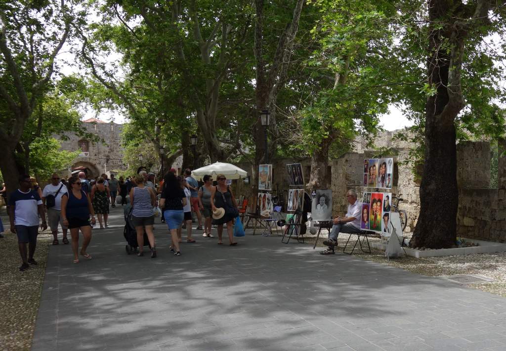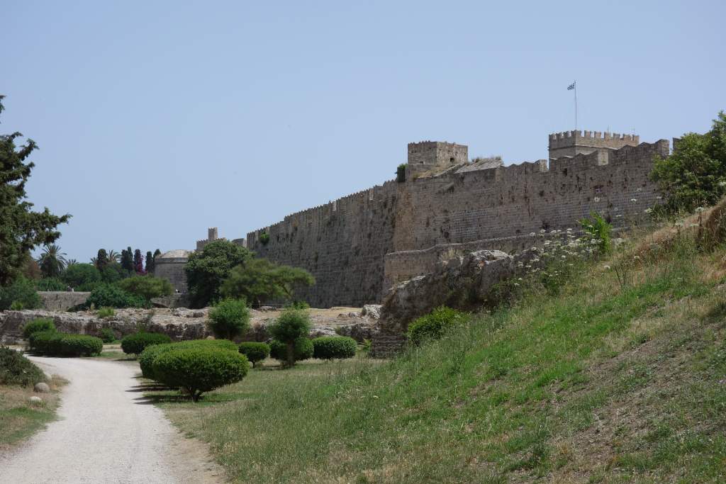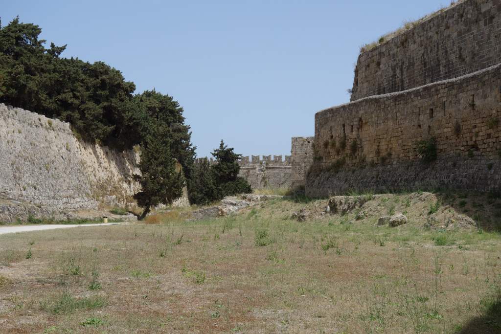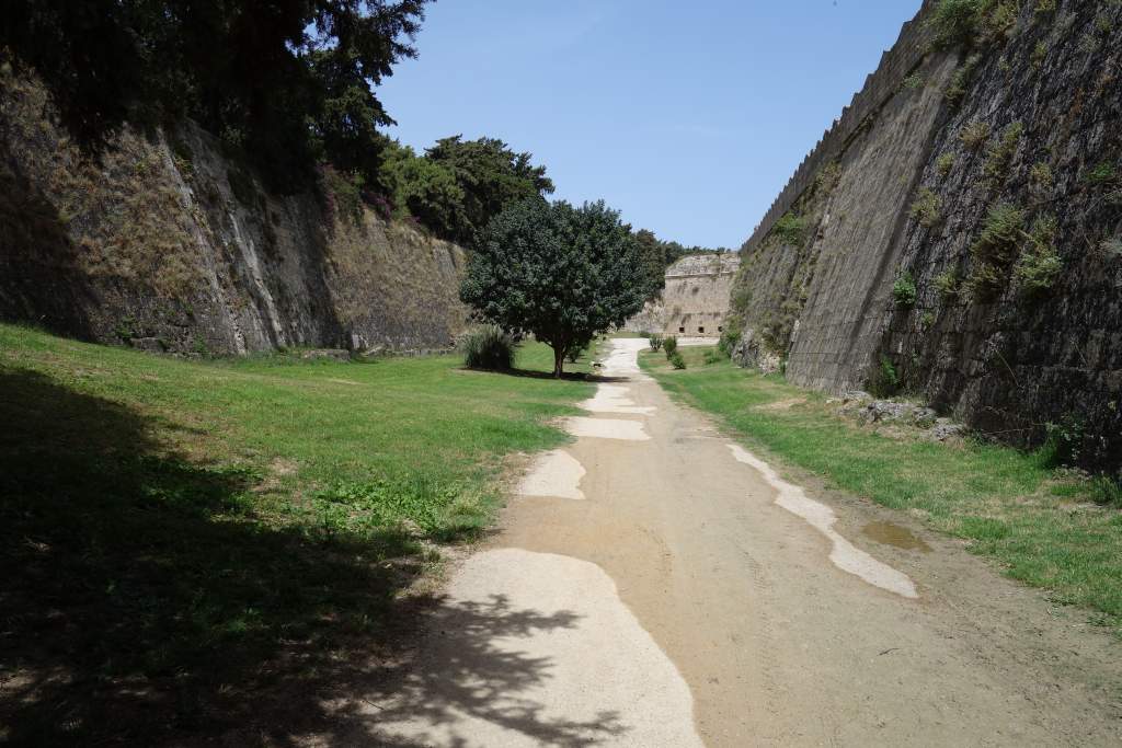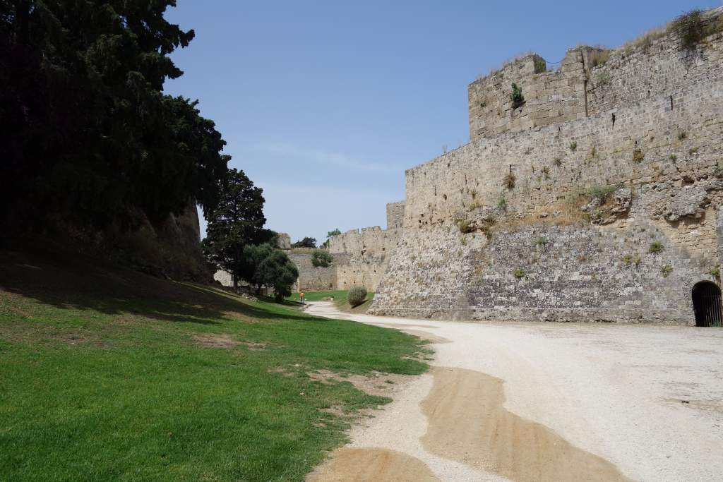 Die Altstadt von Rhodos ist ja super erhalten, noch heute leben dort einige Tausende Einwohner. Die Hauptwege sind gespickt mit touristischen Läden und Restaurants und werden überschwemmt von Massen an Touristen, die teilweise zu Tausenden von 1 bis 2 Kreuzfahrtschiffen stammen. Am Abend nach Auslaufen derselben wird es dann merklich ruhiger, was mir sehr entgegen kommt. Aber auch am Tag muss man sich nur ein wenig weg von den Hauptrouten bewegen und findet wunderbare kleine und ruhige Gassen. Mir persönlich hat am besten der Stadtgraben gefallen, in dem etliche riesige steinerne Kanonenkugeln lagen.